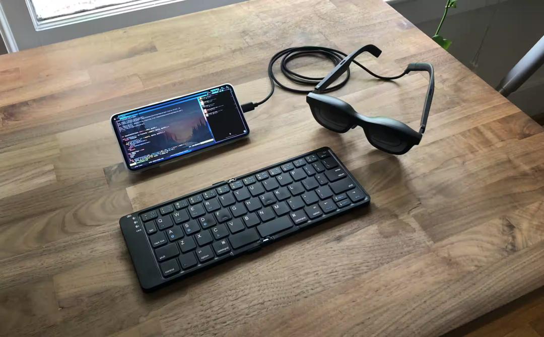 巧合的是,前阵子我刚好要出门两周,还必须得在旅途中工作。当时我突然想到:能不能干脆不带电脑,只靠一部手机搞定所有事情?若果不行,那再加上一副折叠按键和一副AR墨镜呢?