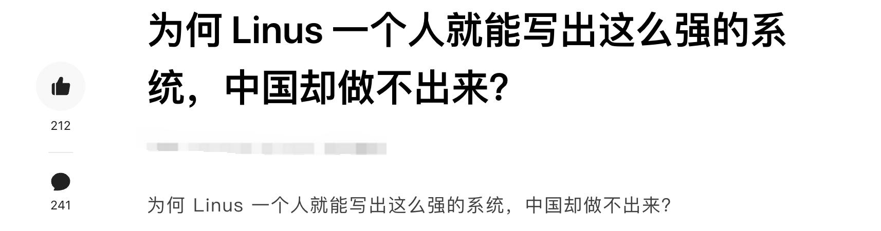 诸位网友们,明天小狮妹在头条见到这样一篇文章:为何中国须要一个团队,而Linus一个人能够创造一款强悍的操作系统?